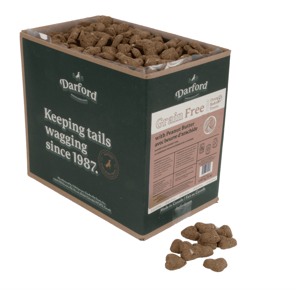 What do you get when you cross a Darford grain free treat with a whole bunch of peanut butter? A peanuty taste of paradise that dogs love. These treats contain a special blend of fruits and vegetables, they’re rich in antioxidants and vitamins, they contain no artificial colors or flavors and they’re gluten free. They are so tasty in fact, that if you just added a dab of jam...well, you get the picture.